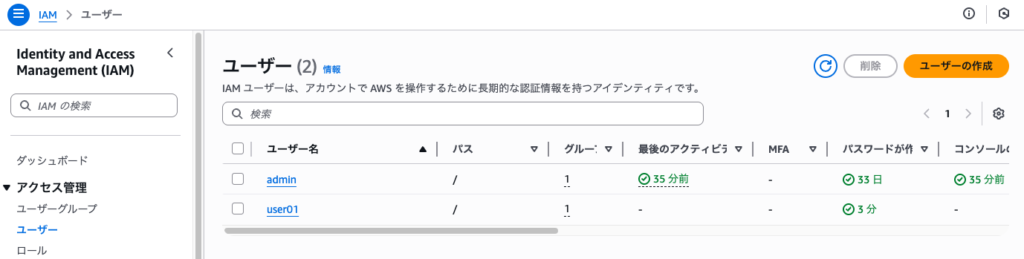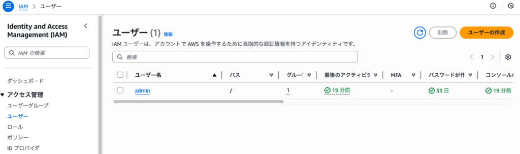 IAMでユーザの作成ができるよ