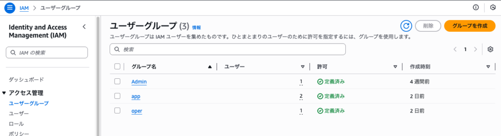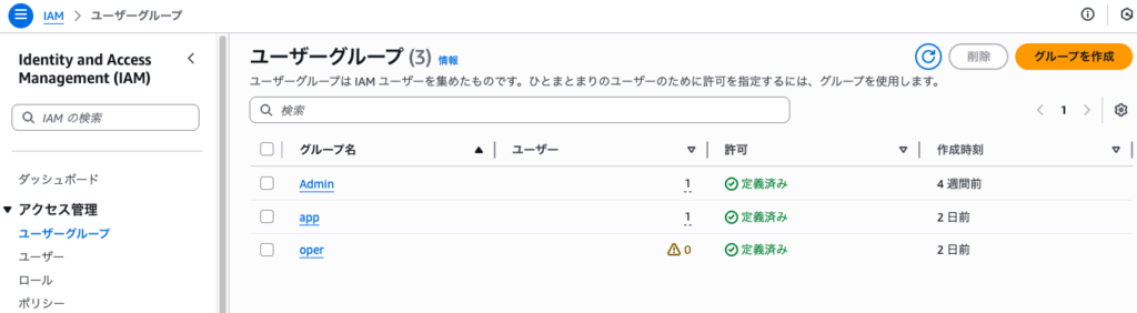 また、「app」と「oper」のグループは同じポリシー「app」がアタッチされているが