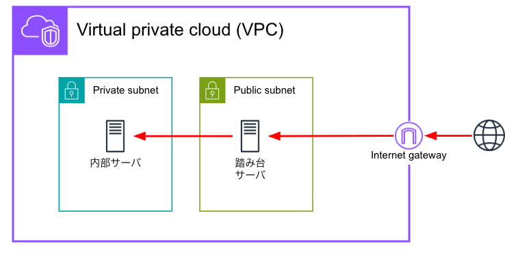プライベートサブネットからの応答の流れは踏み台ではなく