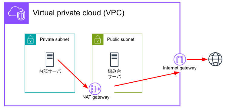 VPCからのインターネットの送信を容易にし、インターネットからの接続を防ぐ