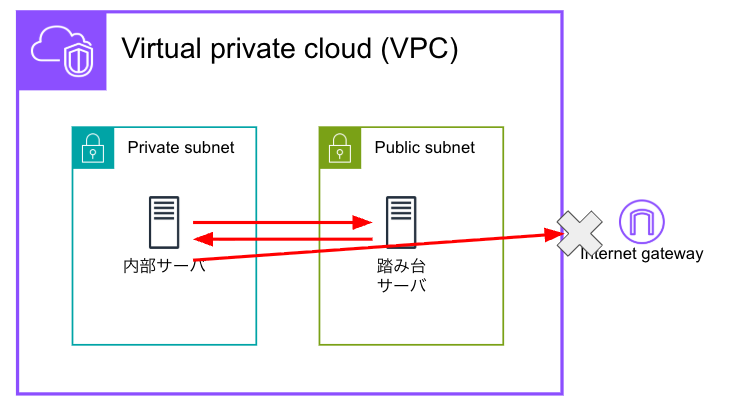 プライベートサブネット内のインスタンスとでは