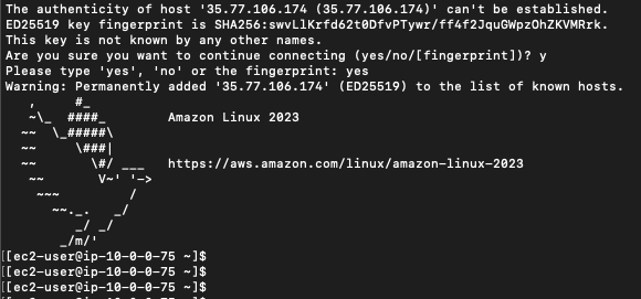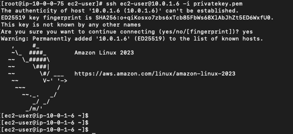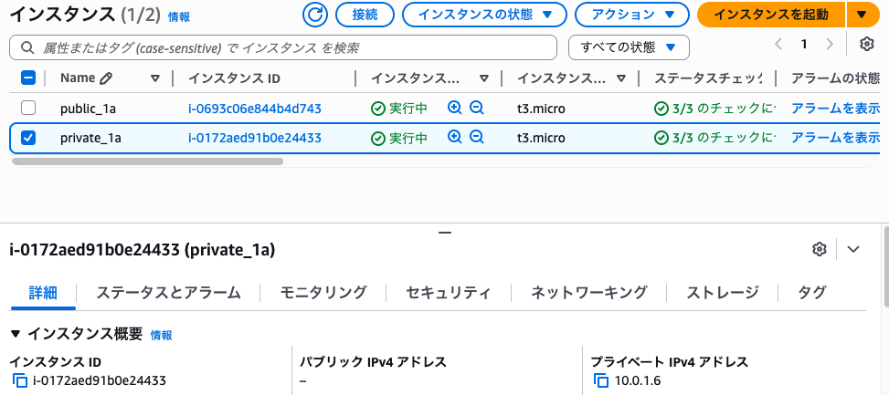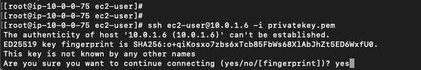ssh ec2-user@<プライベートIPv4アドレス> -i <ファイル名>.pem