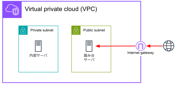 踏み台サーバから、内部サーバにアクセスしていくことをやるよ