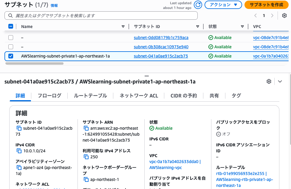 今回はAZがaのサブネット内にある内部サーバへのアクセスをしたいので