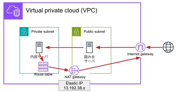 内部サーバからインターネットゲートウェイへのルートを確立してあげることで
